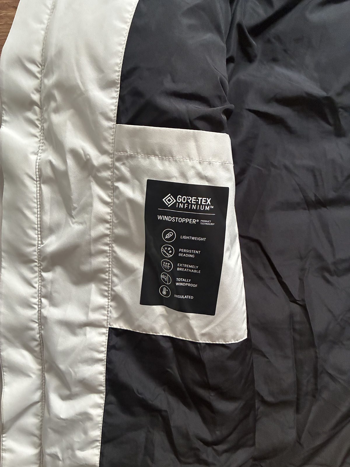 Impermeable por fuera y con 3M insulate por adentro, tiene poquisimo uso, tres o cuatro puestas reales.